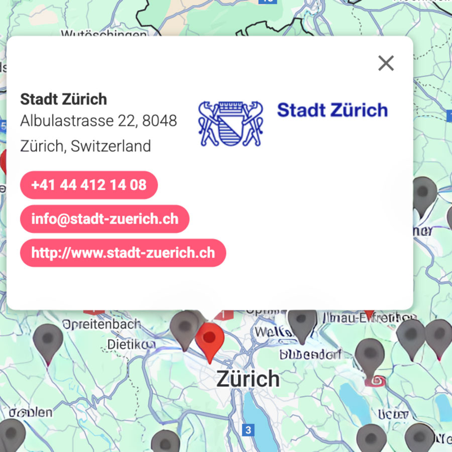 Ihr Unternehmen wird auf unseren interaktiven Karten bevorzugt angezeigt, mit den direkten Kontaktdaten und Logo. Sie erhalten eine jährliche Auswertung, wie oft ihre Firma angesehen und angeklickt wurde.